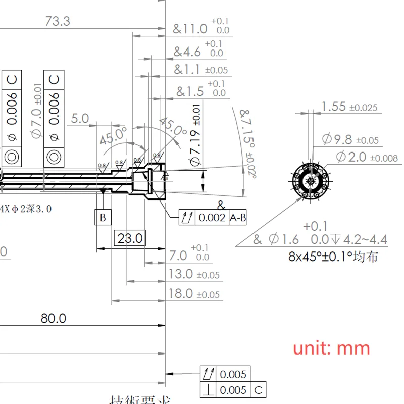 Positioneringsnauwkeurigheid ≤8 µm, oppervlakteruwheid Ra < 0,1 µm